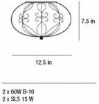 Smooth arcing lines of nickel create the traditionally styled frame of the gondola that cradle either hand blown amber scavo or crystal bubble glass.